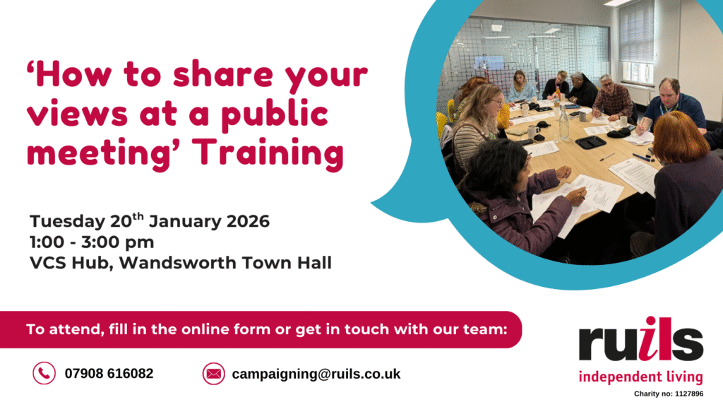 Join Ruils at their ‘How to share your views at a public meeting’ training event on Tuesday 20th Jan from 1-3pm.